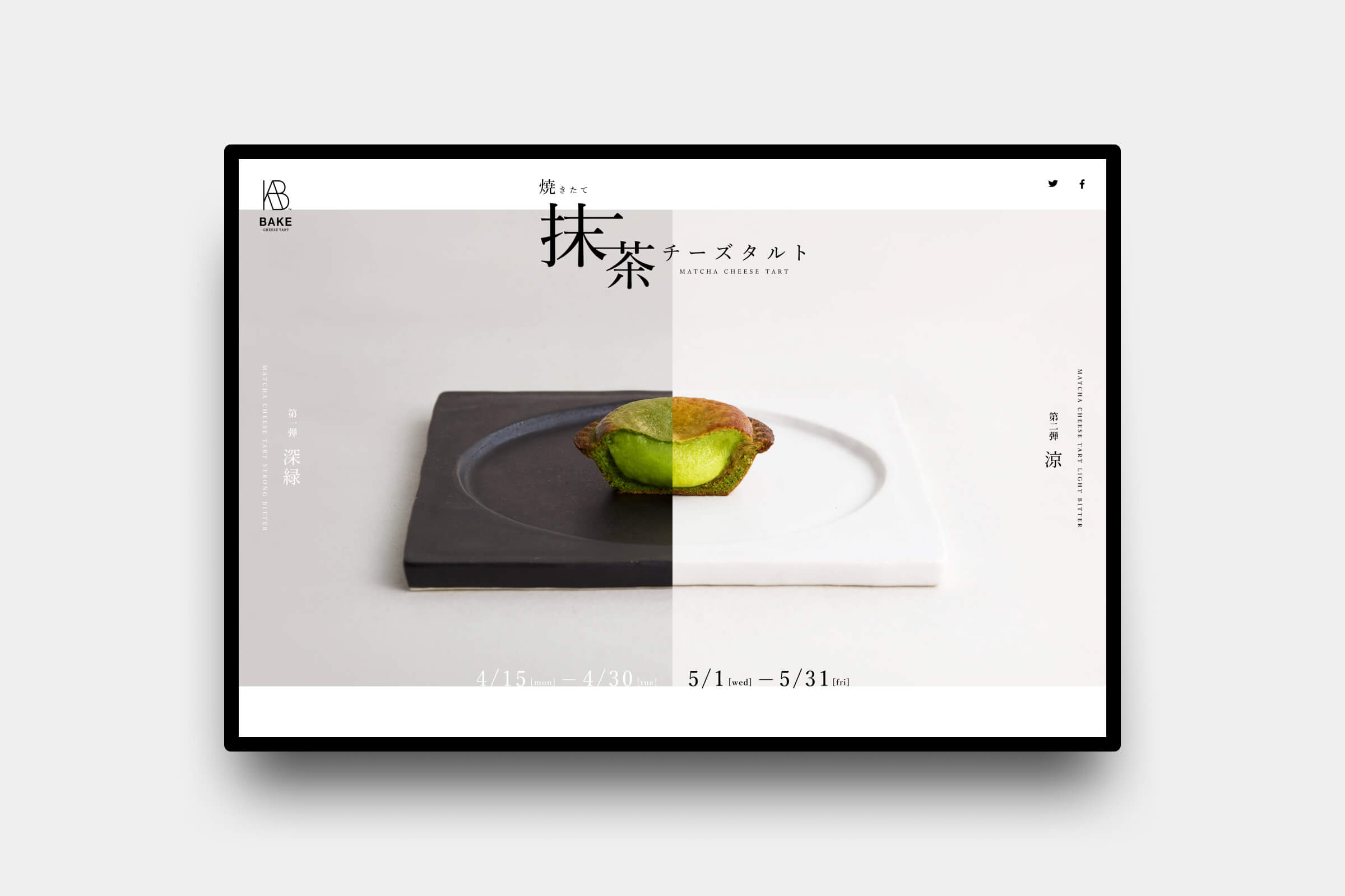 BAKE inc.が展開する、焼きたてチーズタルト専門店「ベイク(BAKE)」の季節限定フレーバー「焼きたて抹茶チーズタルト深緑 / 涼」の特設サイトのデザインを担当させて頂きました。