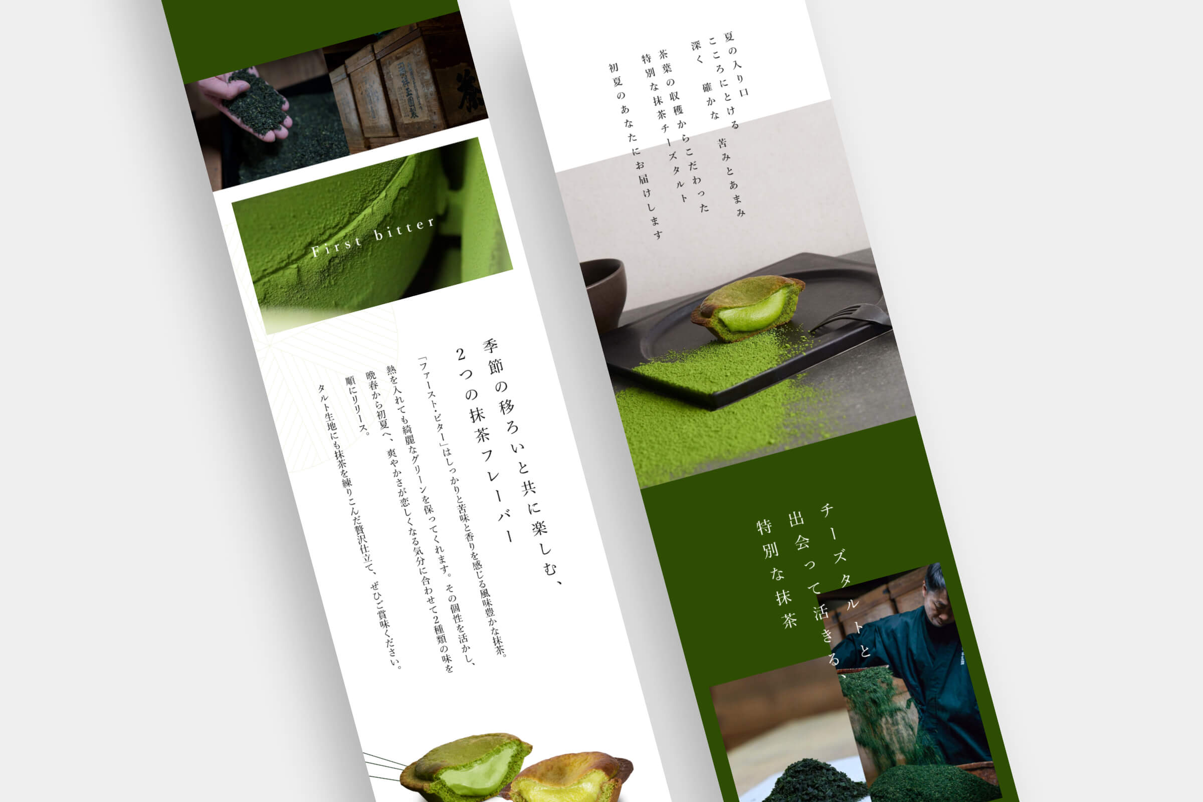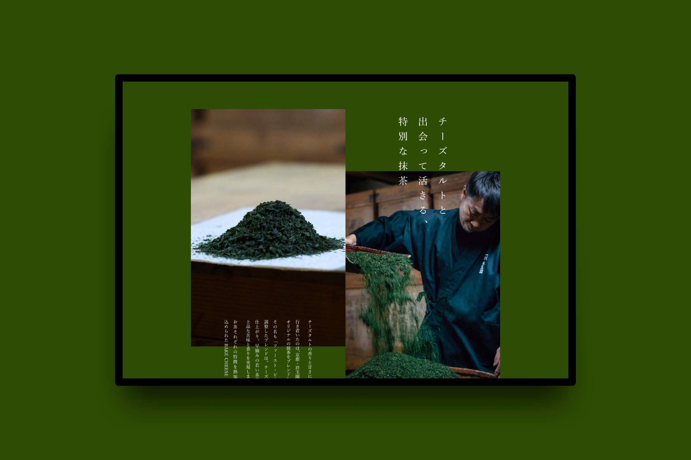 We were in charge of the design of the special website for the seasonal flavor "Freshly Baked Matcha Cheese Tart Dark Green / Ryo" from BAKE, a freshly baked cheese tart specialty store operated by BAKE inc.