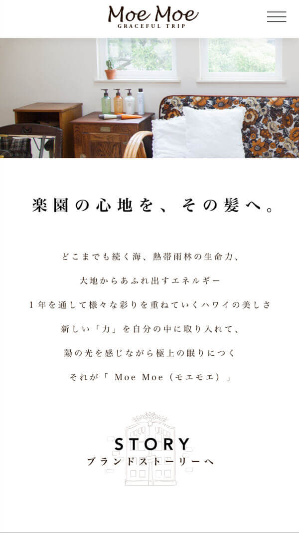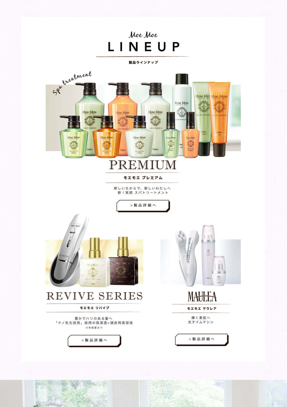 We designed the brand site of "Moe Moe", a total beauty brand that supports not only hair care, but also scalp care and facial care from the viewpoint of a hair salon that pursues women's beauty.