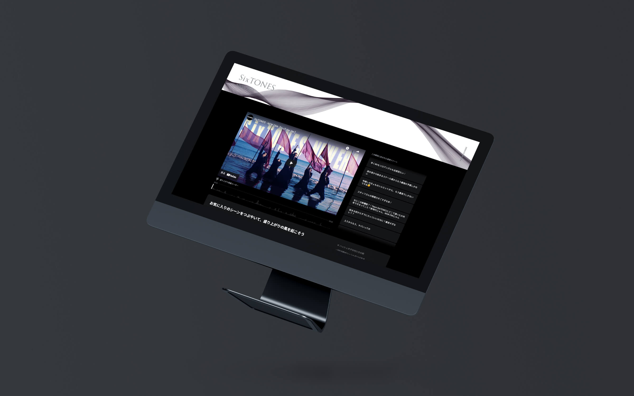 6人組男性アイドルグループ「SixTONES」のMUSIC VIDEO「NEW ERA」の特設サイトデザインを担当させて頂きました。